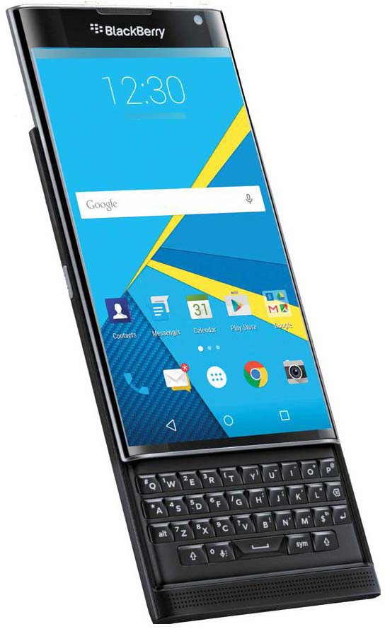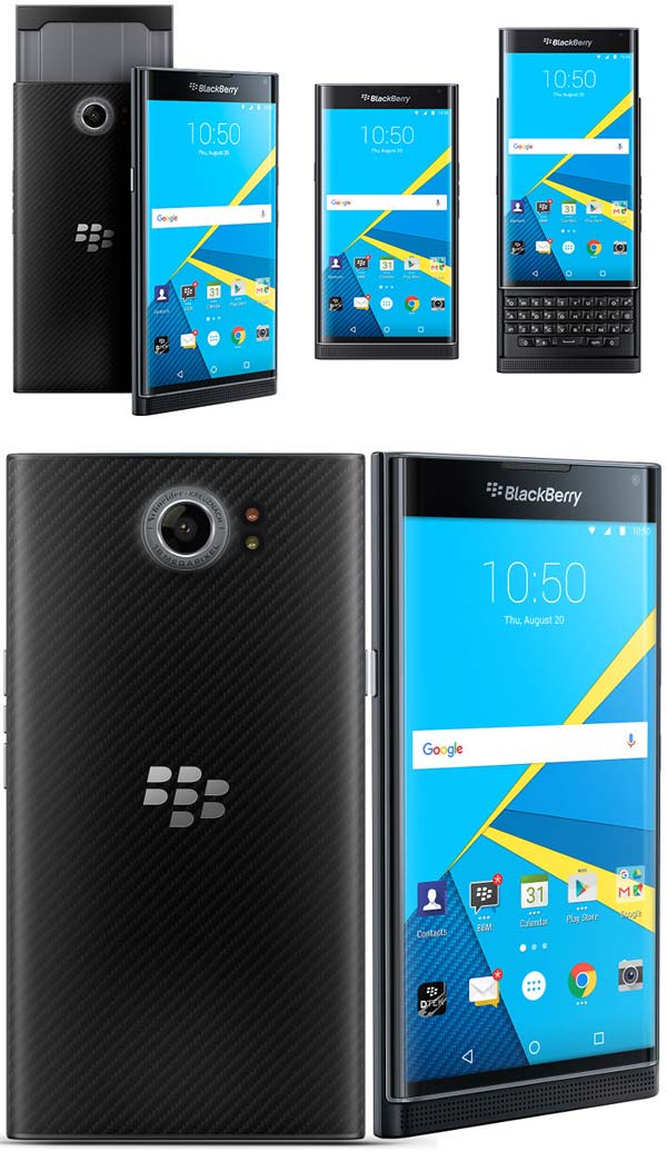 Аппарат получил имя Priv, AMOLED экран фаблета имеет диагональ 5.43", разрешение его - 2560x1440, защищён дисплей Corning Gorilla Glass 4. Основано устройство на 6-ядерной SoC Qualcomm Snapdragon 808 с графикой Adreno 418 (600МГц), имеет 3ГБ оперативной памяти и 32ГБ встроенной расширяемой на 2ТБ флеш памяти. Главной особенностью аппарата является наличие 4-рядной клавиатуры-слайдера.