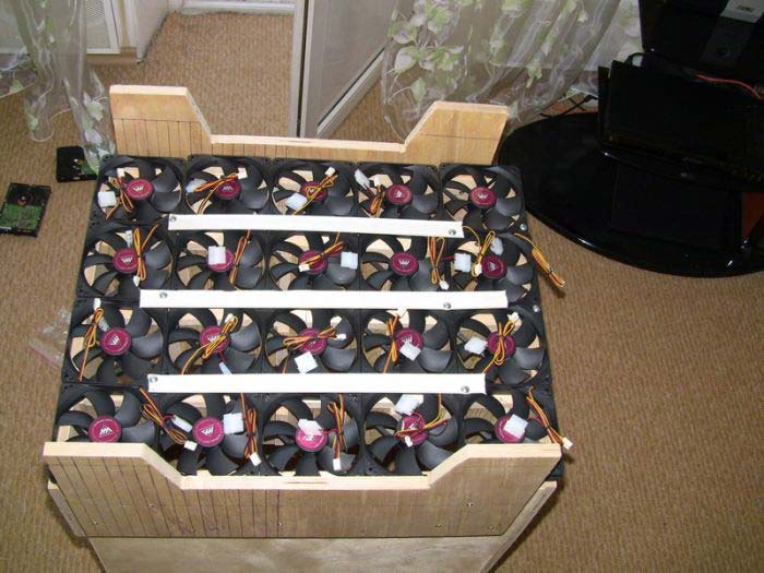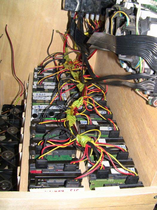 Цитирую: "состав - две материнки, два блока питания по 1600 Вт, 5 контроллеров, 64 жестких диска и 40 карлсонов.
