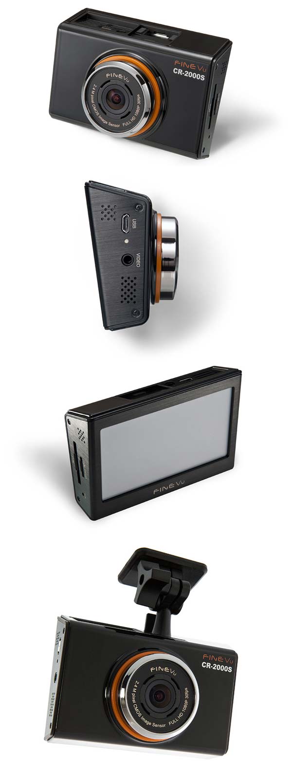 Управление у модели полностью сенсорное, «заточенное» под пальцы. В FineVu CR-2000S установлен 3,5-дюймовый сенсорный IPS-экран, не уступающий по качеству изображения дисплеям смартфонов. Корпус регистратора выполнен из дорогого качественного пластика и имеет металлические элементы, что также вызывает ассоциации с высококлассными «умными телефонами».