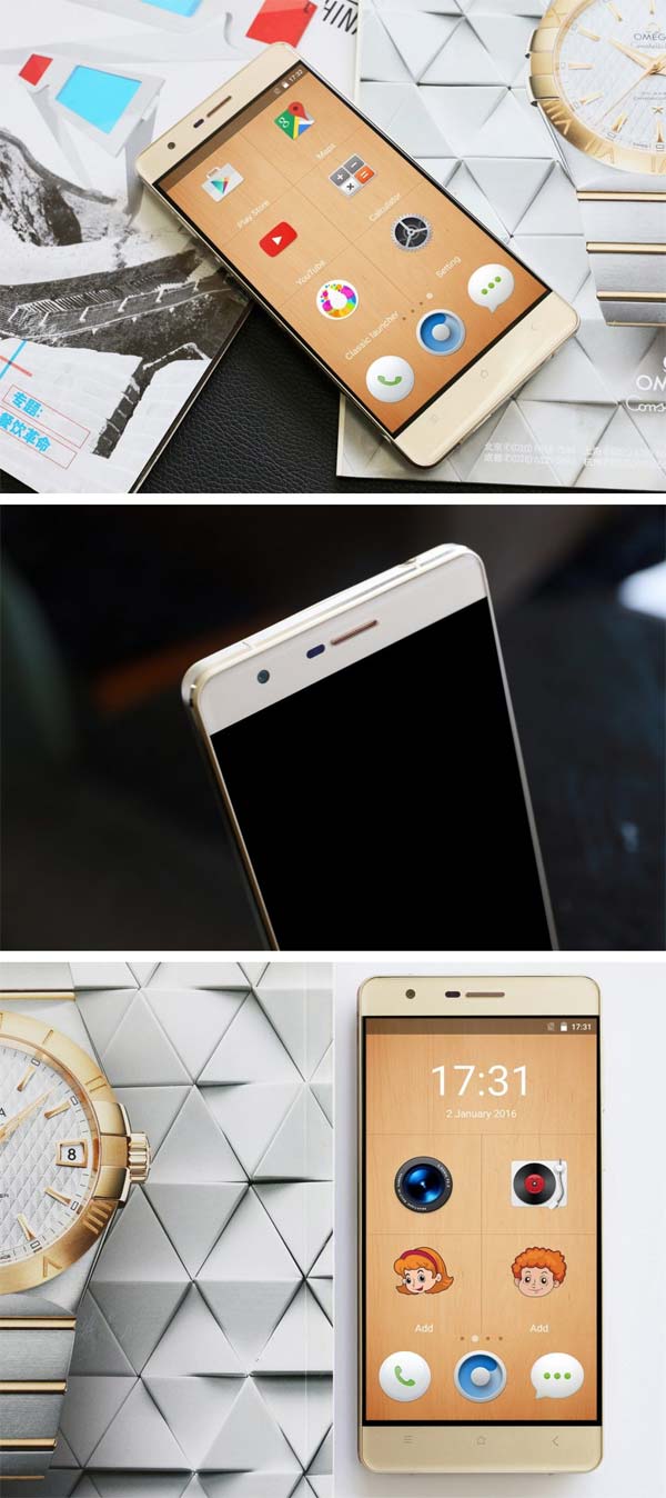 Питается смартфон от батареи на 4000 мАч, поддерживает Bluetooth 4.0, 802.11b/g/n WiFi, GPS, OTG, OTA, ловит FM радио, даёт его слушать через 3.5мм аудиовыход. На Aliexpress за новинку, доступную в разных цветах, просят около 87 долларов США.