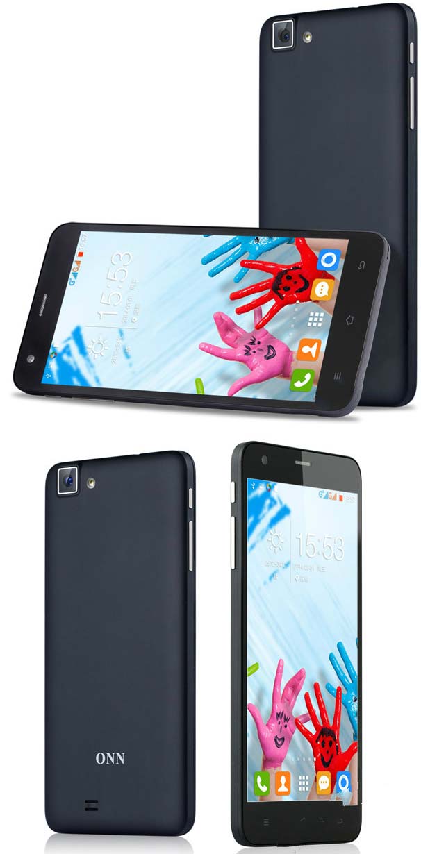 Управление фаблетом доверено Android 4.4.2, толщина корпуса устройства составляет 7.9мм. Работает агрегат в сетях GSM и WCDMA (два слота для SIM карт). Тыловая камера имеет 8МП сенсор, а фронтальная - 3МП. Доступные для ONN V9 Only цвета - чёрный и белый.