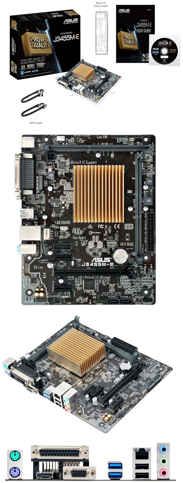 Примечательна плата J3455M-E тем, что в ней используется процессор Intel Celeron J3455 (Apollo Lake), что пока является крайней редкостью. Изделие форм-фактора mATX, имеет два слота для оперативной памяти U-DIMM DDR3 1333-1866МГц Non-ECC, установить которой можно до 16 гигабайт, поддерживается двухканальный режим.