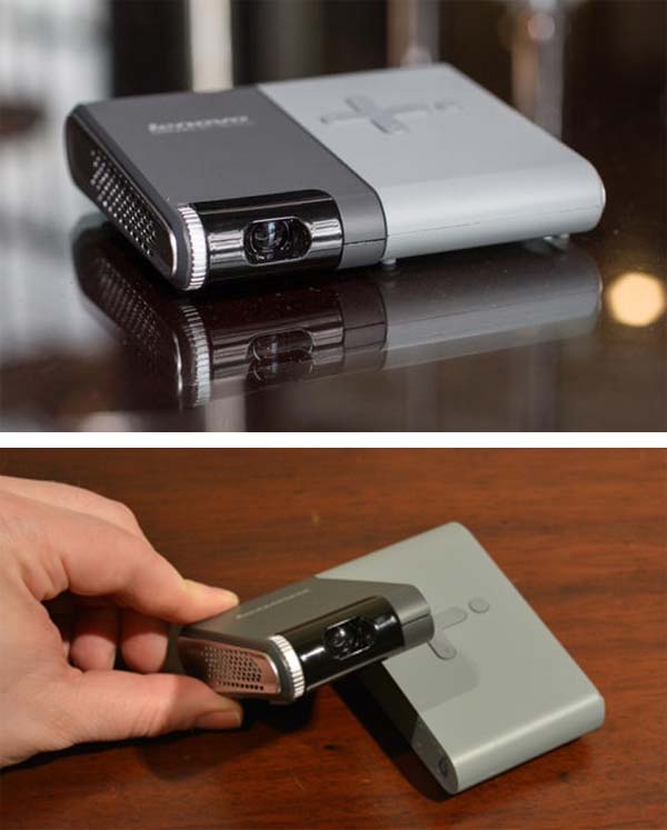 Аппарат именуется просто и понятно - Pocket Projector ("карманный проектор"). Учитывая его размеры (104x25x100мм), с названием не намудрили. Изделие весит всего 170 граммов, способно проецировать изображение с диагональю до 110 дюймов в разрешении 854x480, источником сигнала может быть управляемый Android 4.3+/iOS/Windows 8.1 девайс, главное чтобы была поддержка Miracast или же DLNA.