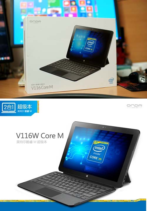 Имя изделия - V116 Core M, основой планшета стал новый, но уже набравший популярность процессор Intel Core M (Broadwell). Изделие получило 11.6" сенсорный IPS экран с Full HD разрешением, клавиатуру с магнитным креплением и тачпад. Также у изделия есть полноразмерный порт USB 3.0 и видеовыход micro-HDMI, плюс две камеры, подробности о которых пока не разглашаются. Как и любой современный планшет, творение Onda поддерживает 802.11n WiFi и Bluetooth 4.0.