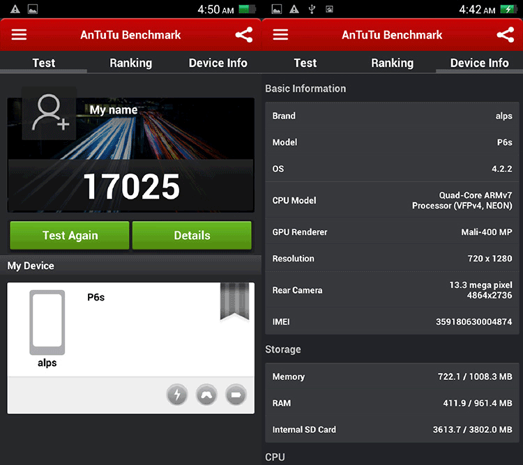 Аппарат Haipai P6s работает в сетях 2G (GSM 850/900/1800/1900МГц) и 3G (WCDMA 850/2100МГц), может управляться с двумя SIM картами одновременно. Изделие основано на четырёхъядерном 1.3ГГц решении MTK6582, имеет 1ГБ оперативной памяти и 8ГБ флеш памяти под ОС Android 4.1 и прочие файлы.