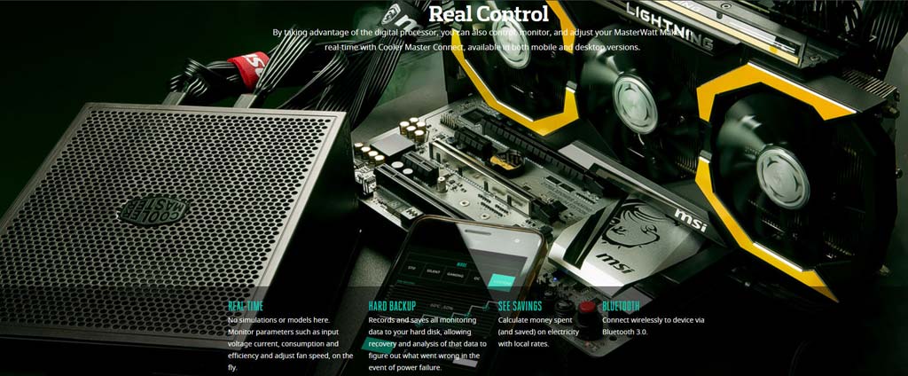 В новинке используются самые качественные комплектующие из продающихся на рынке, решение позиционируется как чуть ли не лучший блок питания от Cooler Master из когда-либо выпускавшихся. На CES 2017 была показана и модель MasterWatt Maker на 1500 ватт с 7-летней гарантией и неким процессором от ARM внутри. Оба БП могут управляться и мониториться с умных устройств по Bluetooth при помощи Cooler Master App.
