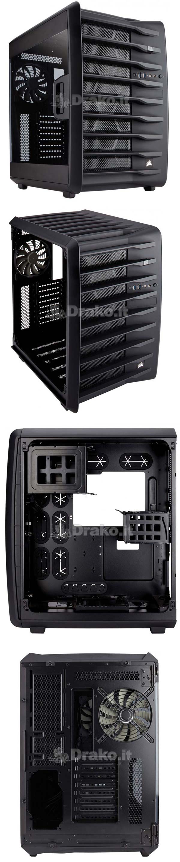 Им стал корпус Carbide Air 740, создан который из стали и ABS-пластика, цвет изделия - чёрный, совместимость заявлена с материнскими платами форм-факторов E-ATX, ATX, microATX и Mini-ITX. Размеры устройства составляют 332x458x415мм, вес не указан. Аппарат обладает тремя установочными местами для 3.5"/2.5" накопителей и четырьмя 2.5", все HDD/SSD крепятся в корпусе без использования каких-либо инструментов.