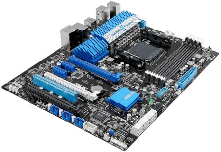 Вот как раз об одном из таких девайсов и пойдёт сейчас речь. Перед нами довольно простая (но при этом не бюджетного вида) материнская плата от ASUS. M5A99X Evo поддерживает процессоры AM3+, несёт на себе чипы AMD 990X и SB950, обладает 6+2 фазовым питанием, поддерживает фирменные технологии данного производителя в лице TPU и EPU (первая отвечает за оверклокинг, а вторая - за энергосберегающий режим). Охлаждение системной платы полностью пассивное (а другое сейчас редко можно увидеть), на новинке уютно расположилось целых восемь портов SATA 6Гбит/с, два или четыре USB 3.0 порта, 7.1 канальное звуковое решение, гигабитная сетевая карта, четыре слота для DDR3 памяти и три - PCIe x16 с поддержкой как CrossFireX, так и SLI.