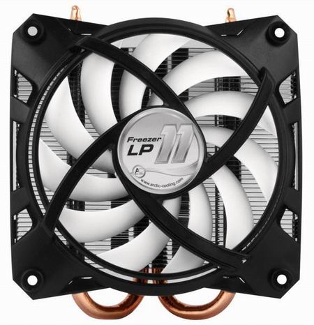 Если корпус Вашего ПК довольно узок и кулер башенного типа туда не влезает, то неплохо бы подумать о решении, наподобие Freezer 11 LP, его габариты (115х106х53мм, а вес - 255 грамм) позволят запихать его, практически, в любое шасси. Несмотря на скромные размеры, новинка может похвастаться алюминиевым радиатором с двумя пронизывающими его теплотрубками, что уже должно поставить его выше BOX-кулера многих процессоров AMD и Intel в плане эффективности. На медное основание радиатора нанесена уже не новая, но от этого не ставшая сколько-нибудь хуже, термопаста Arctic MX-2.