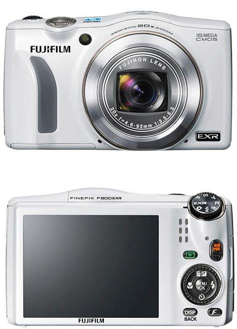 Изделие именуется FinePix F800 EXR, имеет 1/2" 16МП EXR-CMOS сенсор с 25-500мм зумом, диапазон ISO до 12800. Новинка обладает 3-х дюймовым 460к ЖК дисплеем, помимо фотографий она может записывать видео в разрешении 1920х1080 пикселей.