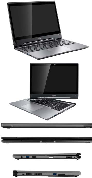 Размеры детища Fujitsu: 321x235x17.1мм, вес равен 1.6КГ и больше, в зависимости от модели. Сенсорный экран имеет диагональ 13.3", это может быть как IGZO с 2K разрешением, так и обычная Full HD панель (IPS/LED, вероятно). Время работы от батареи составляет около 11 часов.