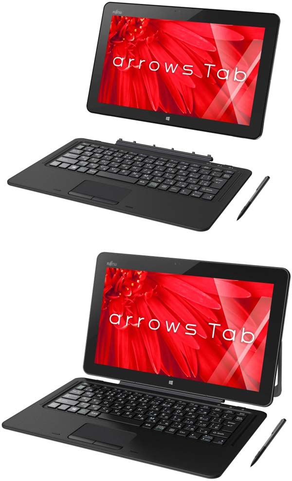 Устройство получило имя arrows Tab RH77/X, представляет собой планшет с 12.5" экраном и клавиатурой-доком, благодаря которой может превращаться в ноутбук. Решение основано на процессоре Intel Core i5-6200U, обладает 4ГБ оперативной памяти и 256ГБ твердотельным накопителем. Разрешение названного сенсорного экрана составляет 1920x1080, поддерживается как ручной ввод, так и с помощью стилуса, дисплей имеет чувствительность в 256 уровней давления на рабочую поверхность.