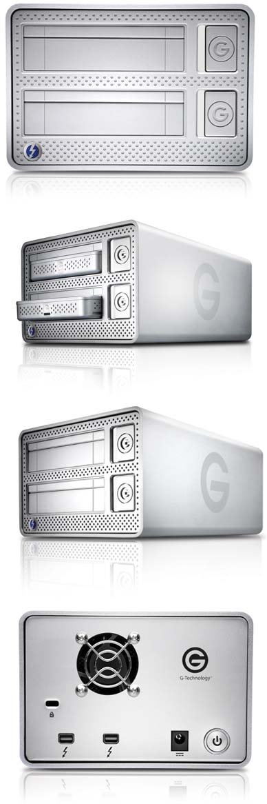 Накопители внутри продукта G-Techlonogy охлаждаются вентилятором, скорость вращения лопастей которого регулируется автоматически. Винчестеры можно сконфигурировать для работы в массивах RAID (0,1) и JBOD.