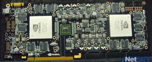 А вот старые снимки того, что отдалённо напоминает GeForce GTX 590