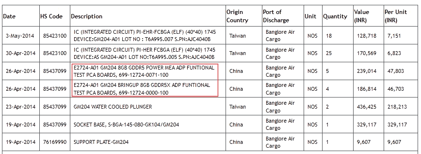 Обратите внимание, в декларации указана стоимость решений на базе GM204 - 47000 рупий (~27956 рублей), но вполне возможно, что цена карты в рознице будет ниже, где-нибудь в районе 500-600 долларов США. Ждём вестей по теме, ведь новинка на базе Maxwell для десктопов может быть очень интересной во всех отношениях видеокартой.