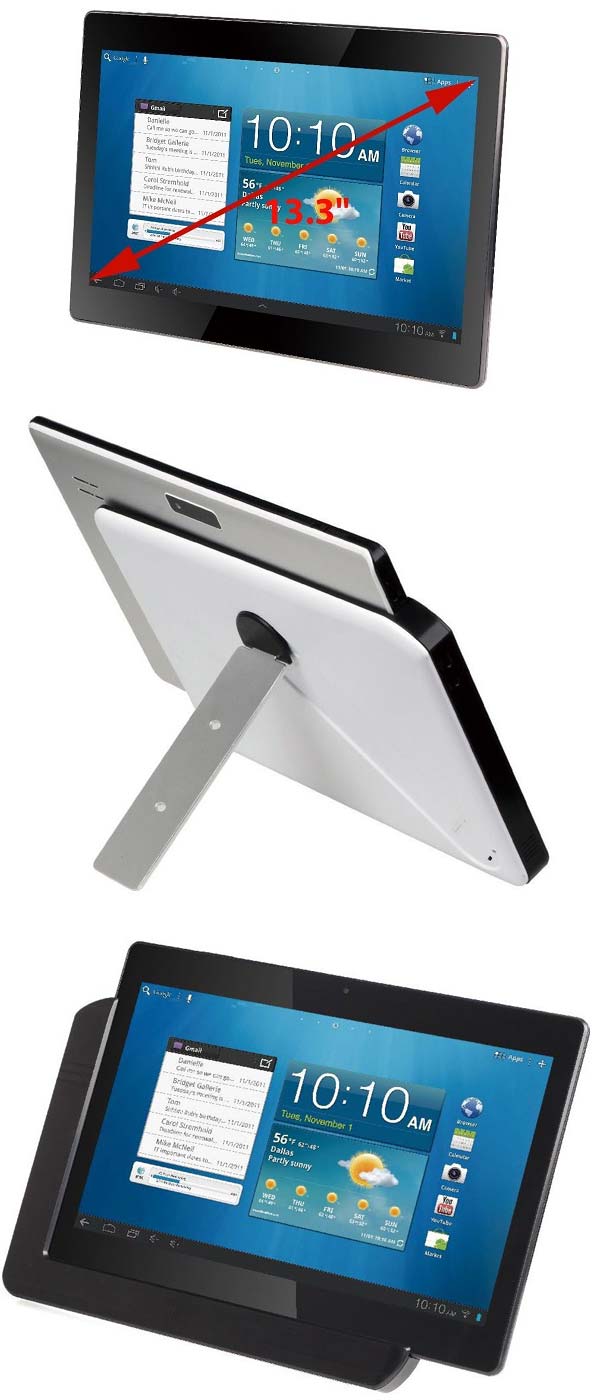 Планшет не имеет названия, зато о нём всё известно. Аппарат получит 13.3" TFT экран с разрешением 1600x900, разумеется он будет ёмкостного типа и поддерживать Multi-touch. Управлять изделием доверено почему-то Android 4.1, а не более прогрессивной версии этой ОС. Объём встроенной флеш памяти равен 16ГБ, её разрешается расширить на 32ГБ карточкой microSD/SDHC.