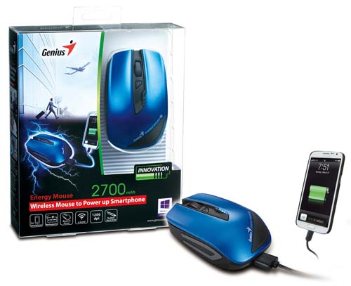 У аппарата Genius имеется сенсор с разрешением 1200 точек на дюйм, внутри Energy Mouse запрятана аккумуляторная литий-полимерная батарея на 2700 мАч. На корпусе мышки можно найти четыре светодиодных индикатора, показывающих статус батареи, уровень её заряда. Соединение мышки с компьютером осуществляется посредством 2.4ГГц технологии, максимальная расстояние для соединения составляет 10 метров.