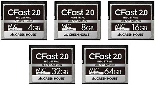 Серия изделий названа GH-CFS-NMB, в неё вошли карты CFast 2.0 ёмкостью 4, 8, 16, 32 и 64ГБ. Изделия не так просты как кажутся - они используют MLC NAND флеш память, некий контроллер от JMicron, в чём напоминают SSD, а это можно расценивать как комплимент в адрес создателей накопителей.