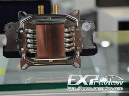 Устройство напоминает мне решение от Asetek и PNY, но для процессора, а не для видеокарты. Т.е. перед нами обычный кулер башенного типа, с вентилятором - на первый взгляд всё, как всегда. Но первое впечатление обманчиво, т.к. от кулера идут два шланга к 2х120мм радиатору, совмещённому с помпой, которая гоняет водицу/иную жидкость туда-сюда.