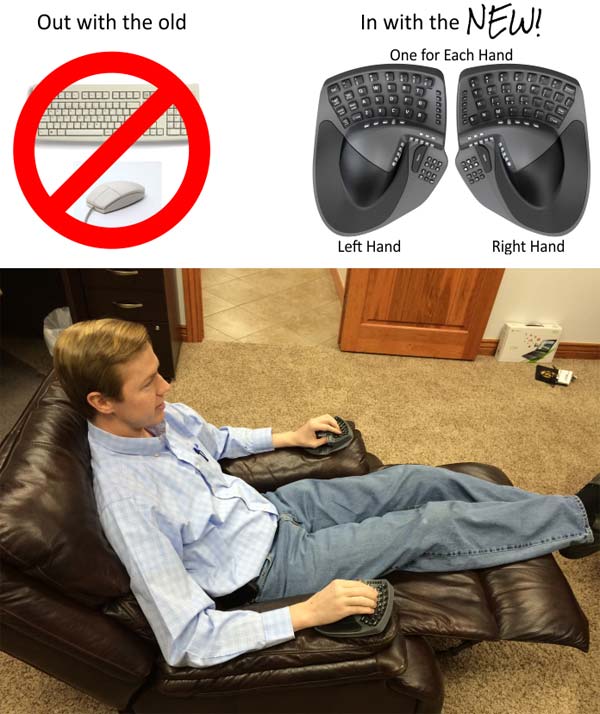 А что такое KeyMouse? Это разработанный некими энтузиастами гибрид мыши и клавиатуры, состоящий из двух частей. Изделие подключается по USB или же Bluetooth 3.0, позволяет быстро печатать и управлять курсором мышки, не тратя время на перенос рук с клавиатуры на мышку и обратно, а благодаря особой форме, изделие не способствует развитию синдрома запястного канала (карпального туннельного синдрома / CTS), который есть у некоторых пользователей, использующих клавиатуру обычной формы.