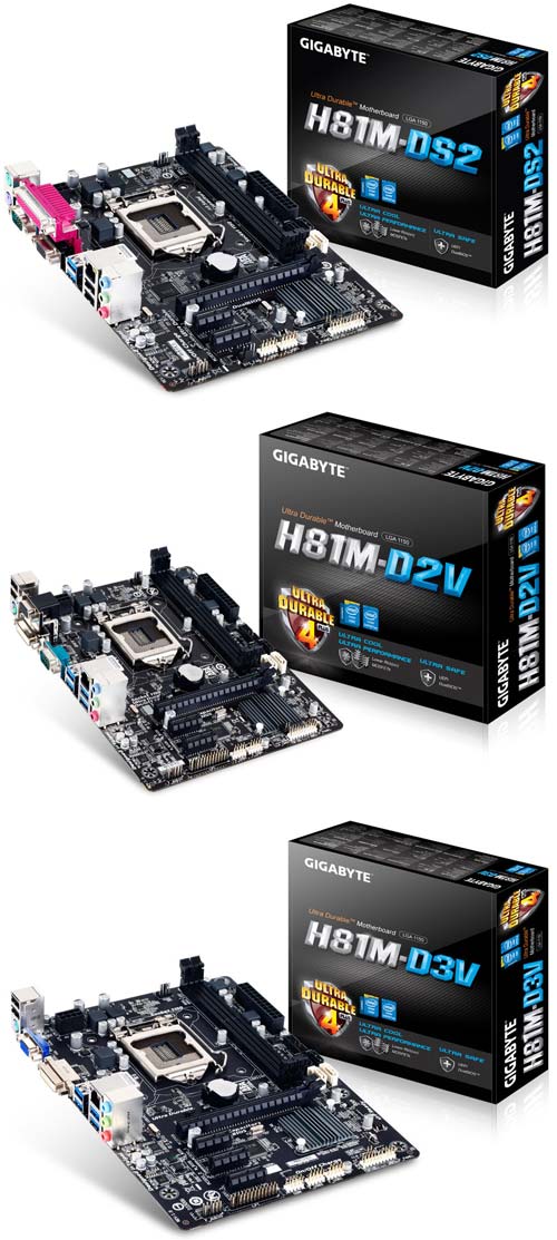 Нам демонстрируют платы H81M-DS2, H81M-D2V и H81M-D3V от Gigabyte