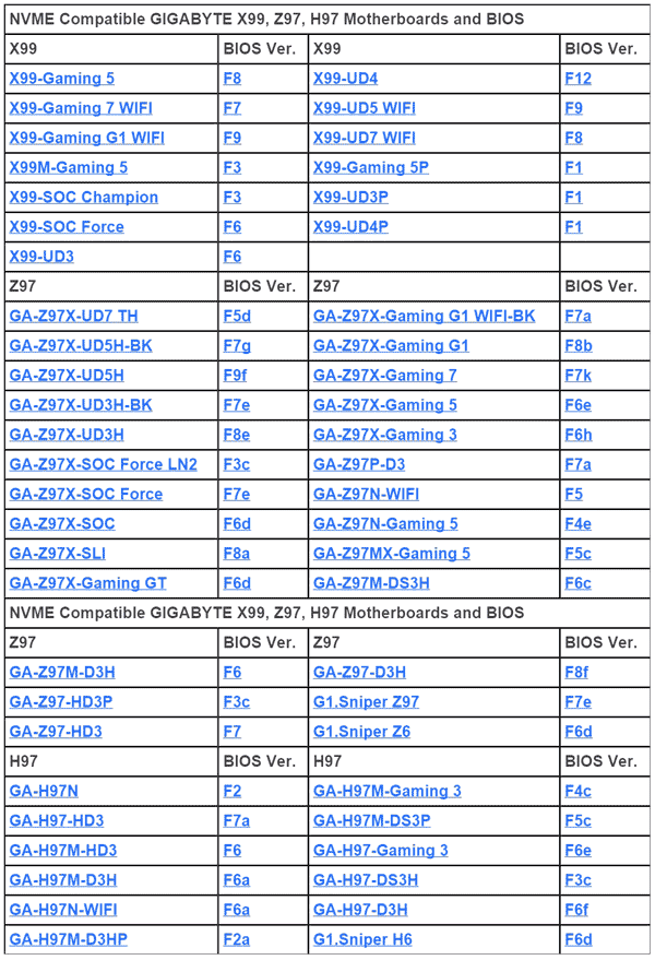 Первым делом нам предлагают взглянуть на полный список системных плат на базе чипсетов X99, Z97 и H97, которые с последней версией BIOS смогут без труда полноценно работать с первым PCIe решением Intel, созданным для рынка игровых ПК высокого уровня, а также рабочих станций: