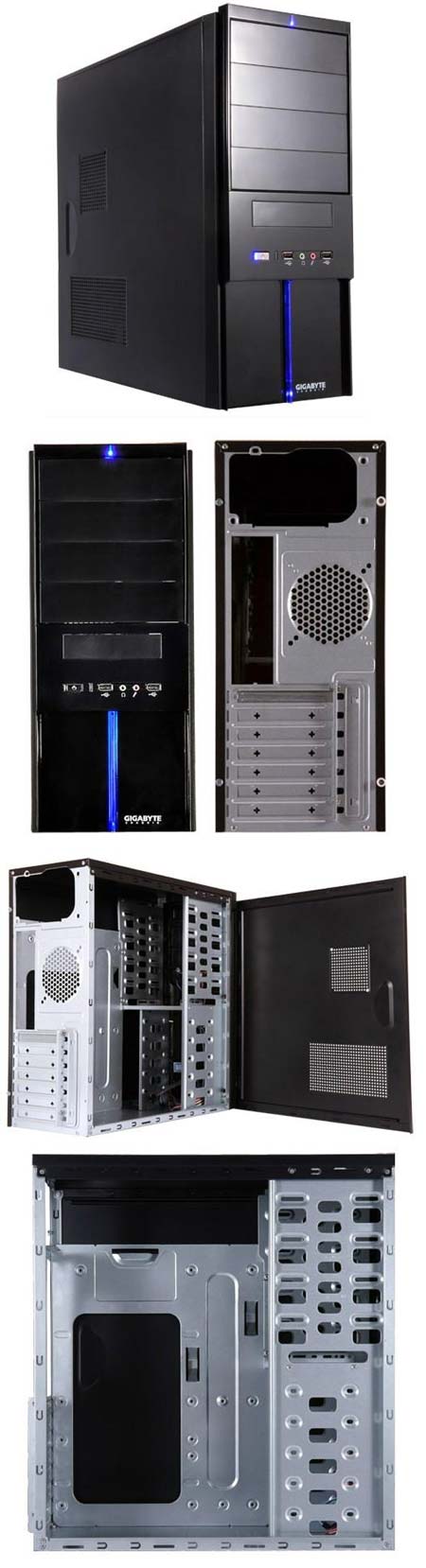 Перед нами Mid-Tower, имеющий габариты 180х420х380мм, да вес 3.2кг. Он сделан из стали, имеет только чёрный окрас и предназначен для системных плат форм-факторов ATX и MicroATX. На панели ввода/вывода имеются аудиовходы и пара USB 2.0. Количество отсеков для 5.25" устройств - четыре, мест для 3.5" накопителей - пять. Больше о корпусе ничего неизвестно, кроме того, что на выдув на заднюю стенку установлен 80мм вентилятор.