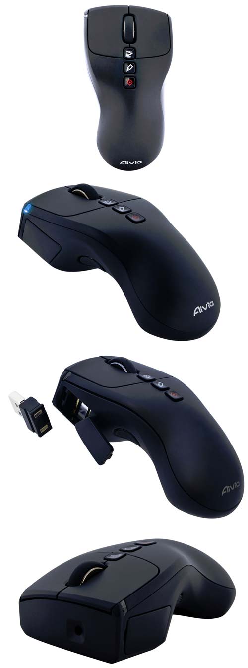 Новинка может выступить как в роли обычной беспроводной мыши для компьютера (USB ресивер в комплекте), так и в роли пульта для презентаций с лазерным указателем. Питается Aivia Neon от встроенной литий-ионной батареи, которая заряжается при USB подключении устройства. Да - мышка может использовать и с проводом, а не только в wireless режиме.