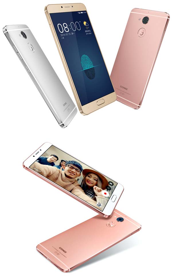 Тыловая камера устройства получила 13МП сенсор, PDAF фокусировку (скорость срабатывания - 0.1 секунды) и LED вспышку, фронтальная - 8МП сенсор. Корпус творения Gionee выполнен из сплава алюминия с магнием, указанный сканер отпечатков пальцев находится в кнопке Home, поддерживает Trustonic TEE.