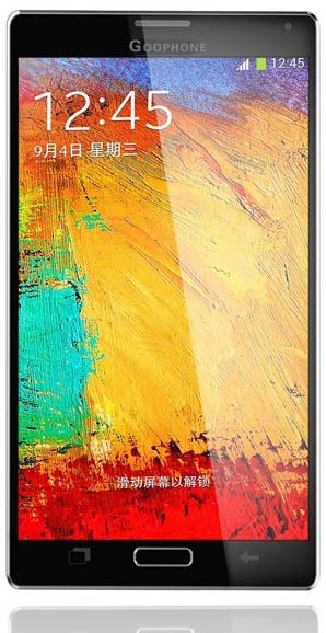 IPS экран управляемого Android 4.4 аппарата обладает диагональю 5.7", у него Full HD разрешение. Фаблет Goophone N4 имеет два слота для SIM карт, работает в сетях GSM и WCDMA, ловит FM радио, обладает 3.5мм аудиовыходом, портом Micro USB, поддержкой WiFi, Bluetooth и GPS/A-GPS с EPO.