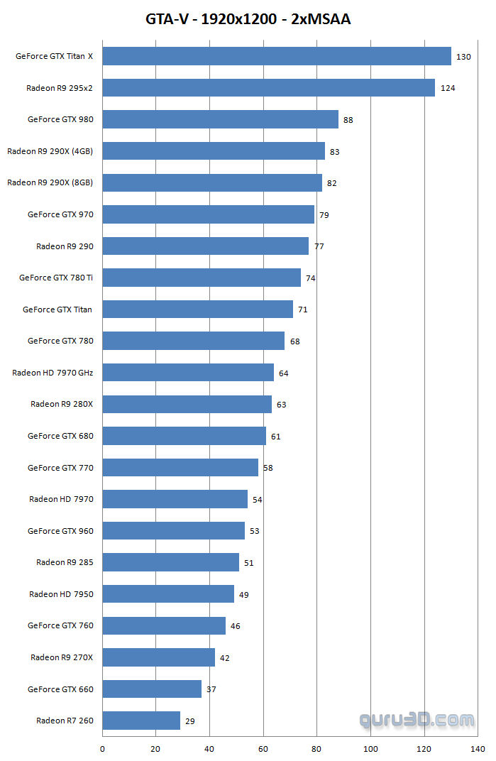 GTA V только-только появилась на ПК, как ресурс Guru3D тут же одарил нас подробным материалом о производительности видеокарт в новейшем творении Rockstar. Не уверены, что Ваш графический адаптер потянет 60+ГБ чудо? Тогда смотрите графики ниже.