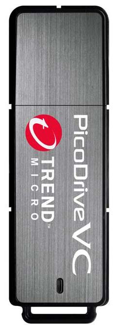 Габариты новинки: 61х20х5.9мм, вес - 9 граммов. Флешка интересна тем, что поддерживает автоматическое аппаратное шифрование данных по алгоритму AES-256. На накопителе также записан антивирусник Trend Micro, работающий прямо с PicoDrive VC (портабл/портативная-версия).
