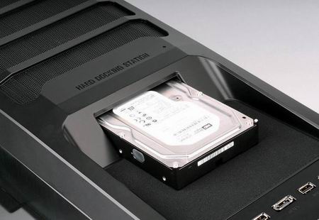 Габариты корпуса, пока что, неизвестны, ровно как и вес. Зато ясно, что он обладает четырьмя 5.25" отсеками, док-станцией для винчестеров в верхней части (там же, где находятся аудио-порты, USB 2.0, USB 3.0 и eSATA коннекторы) и по крайней мере, тремя вентиляторами.
