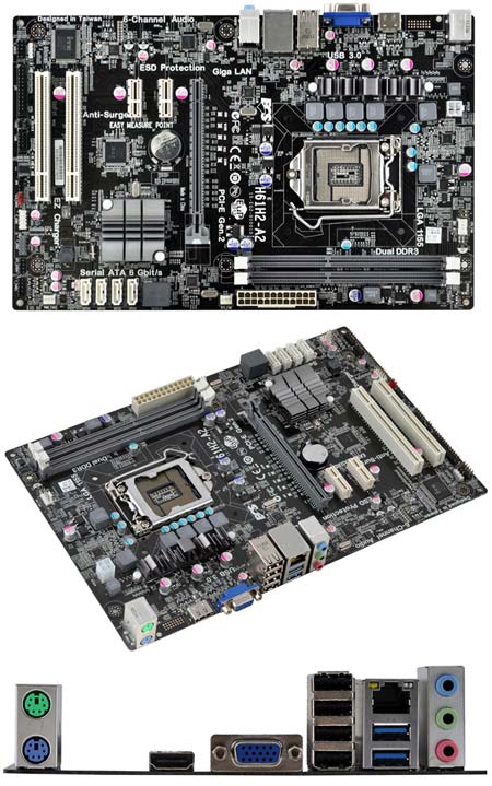 Название новинки - H61H2-A2 Black Deluxe, она будет интересна тем, кто хочет построить компьютер на базе процессоров Core второго поколения, но не игровой направленности. А какой? Тут уже дело за пользователем, ведь в его распоряжение попадает устройство с двумя слотами для оперативной памяти DDR3, одним слотом PCIe x16, парой PCIe x1 и таким же количеством PCI. У платы четыре порта SATA 3Гб/с и два - SATA 6Гб/с, 5.1-канальный звук Realtek ALC662, видеовыходы HDMI, DVI и D-Sub, четыре порта USB 2.0 и два - USB 3.0, да гигабитная сетевая карта. Габариты устройства составляют 305х195мм, форм-фактор - ATX, используется uEFI BIOS.