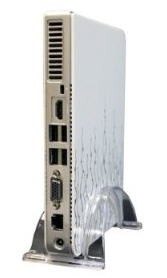 Новинка основана на ION2, процессором является двухъядерный Intel Atom D510, тактовая частота которого 1.66ГГц, оперативной памяти - 2ГБ. На борту устройства, само-собой, имеются и порты USB 2.0 (четыре штуки) и даже один eSATA коннектор. Раз уж основное назначение таких ПК - это сёрфинг по Интернету, то не стоит удивляться наличию гигабитной сетевой платы и поддержки WiFI (реализация в данном случае в виде карты в слоте mini-PCI-e). Видеовыходы - HDMI и VGA. Внутреннего накопителя у устройства нет (а по другим данным есть - жёсткий диск на 250ГБ). Поддерживаемые ОСи - Microsoft Windows XP Embedded, Windows XP, Windows Vista and Windows 7, Linux и Windows Embedded. Кстати, габариты новинки - 7.5x6x1 дюйм.