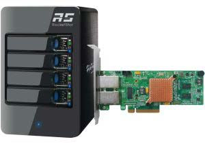 Также высокоскоростное решение для ПК и Mac, но менее высокого уровня. Комплектный PCIe x8 6Гб/с SAS RAID позволяет создание массивов RAID 0, 1, 5, 10 и JBOD.