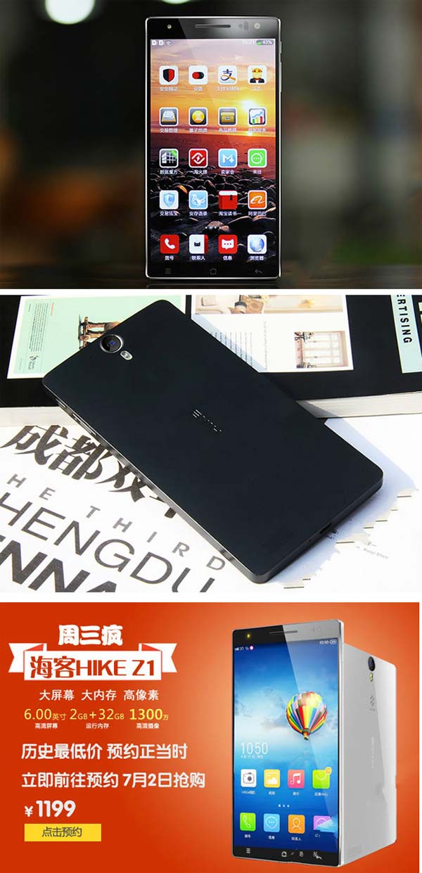 Размеры HIKe Z1 составляют 158x81.33x7.9мм, вес почему-то не указывается. Управляется аппарат, судя по всему, Aliyun OS. Новинка питается от батареи на 3000 мАч, имеет 13МП тыловую и 8МП фронтальную камеры, дизайн аппарата пришёлся по вкусу моим иностранным коллегам.