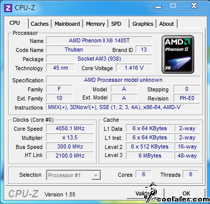 Что-то меня повело от темы. Итак - в продаже (пока только в Китае) появился четырёхъядерный процессор AMD Phenom II X4 840T, который можно, при определённой доле везения, превратить в шестиядерный, то бишь в hexacore (хексакор). После разблокировки дополнительных двух ядер, утилита CPU-Z определяет процессор как Phenom II X6 1405T, правда забавно ?