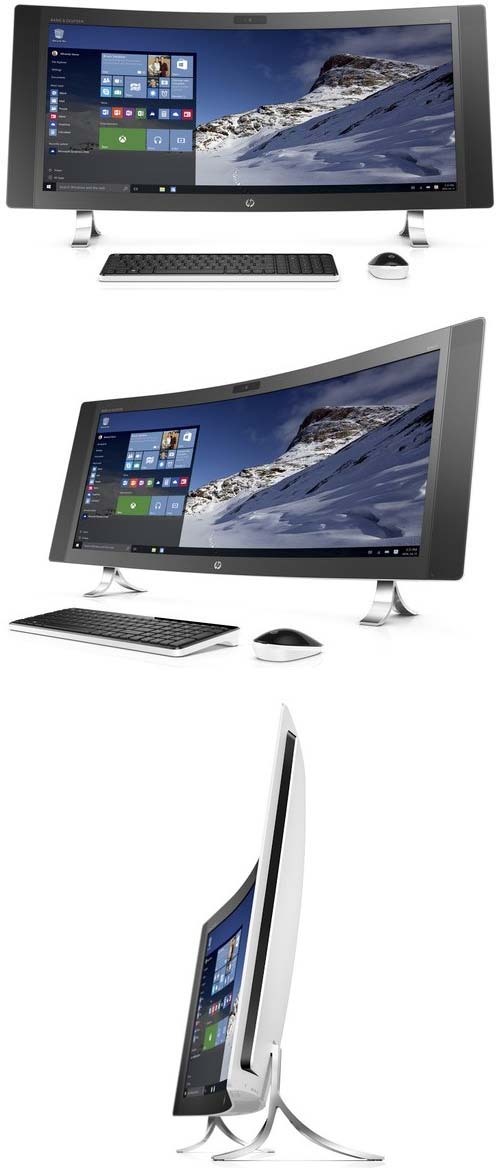HP Envy 34 интересен тем, что обладает 34" изогнутым экраном с разрешением 3440x1440, чисто визуально такая конструкция смотрится очень интересно. Внутри новинка не хуже чем снаружи, в аппарате используется процессор Intel Core i5 или же i7 последнего поколения (Skylake), объём оперативной памяти может быть равен восьми или шестнадцати гигабайтам, места на SSD 128ГБ, на винчестере - 2ТБ.