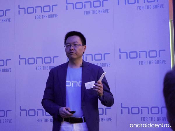 Представитель Huawei показывает европейский вариант фаблета Honor 4X