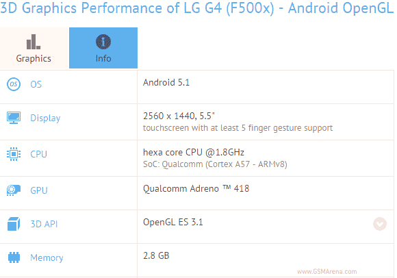 Скриншот из базы данных GFXBench со сведениями о фаблете LG G4