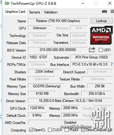 Далее нам демонстрируют видеокарту XFX Radeon RX 480 глазами утилиты GPU-Z: