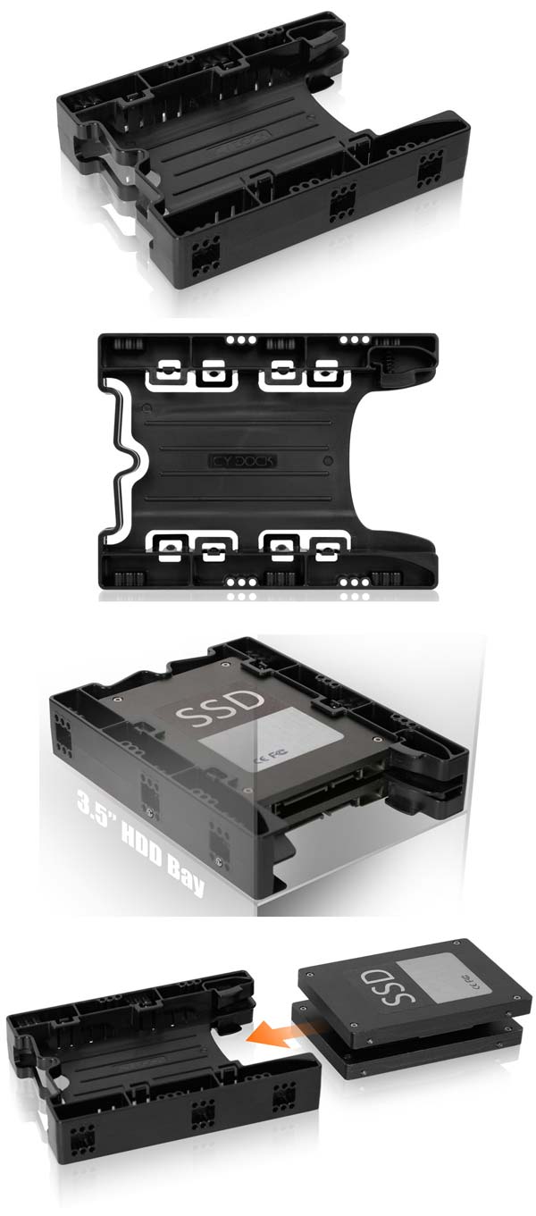 Компания Icy Dock представляет нашему вниманию свой новый продукт, он понравится владельцам корпусов, в которых нет места для 2.5" накопителей.