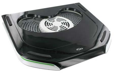 Что за устройство перед нами? Это кулер для ноутбука, что выполняет также и функцию подставки, габариты новинки следующие: 324.6x279.4x35.6мм, а вес - 635 граммов. Здоровенная штуковина, хотя и не самый крупный представитель своего вида. Какого типоразмера установлен вентилятор в этом девайсе, нам не сообщают, к сожалению, также неизвестны и шумовые характеристики новинки, но говорится, что "карлсон" эксклюзивного дизайна (выполнен конкретно для кулера от iGO и более нигде не встречается) и очень шустрый.