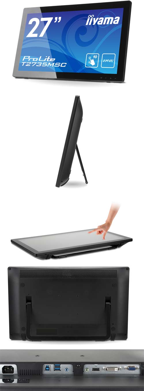 Новинка именуется ProLite T2735MSC, она имеет в основе AMVA панель/матрицу, произведённую AU Optronics, разрешение 27" дисплея составляет 1920x1080, время отклика - 12мс (bwb) и 5мс (gtg), Multi-touch поддерживается 10-точечный. Показатель яркости у монитора составляет 260 кандел на квадратный метр, контрастность - 3000 к 1, количество отображаемых цветов равно 16.7 миллионам.