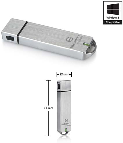 Размеры IronKey Workspace W500 составляют 82x21x9мм, вес равен 32 граммам. Новинки серии поддерживают "фичу" Windows To Go, что будет полезно тем, кто решит загружать Windows 8 на флешку и таскать ОС с собой.