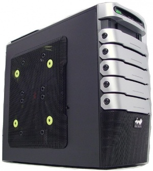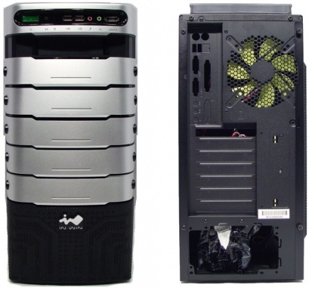 Размеры корпуса составляют 456 х 225 х 500мм. In Win Android имеет пять отсеков 5,25" и четыре 3,5" один из которых внешний. Блок питания расположен снизу, имеется семь отсеков PCI. Отверстий для шлангов СВО не предусмотрено, что удивляет. На передней и задней панелях расположены 120 мм вентиляторы, первый имеет фильтр.