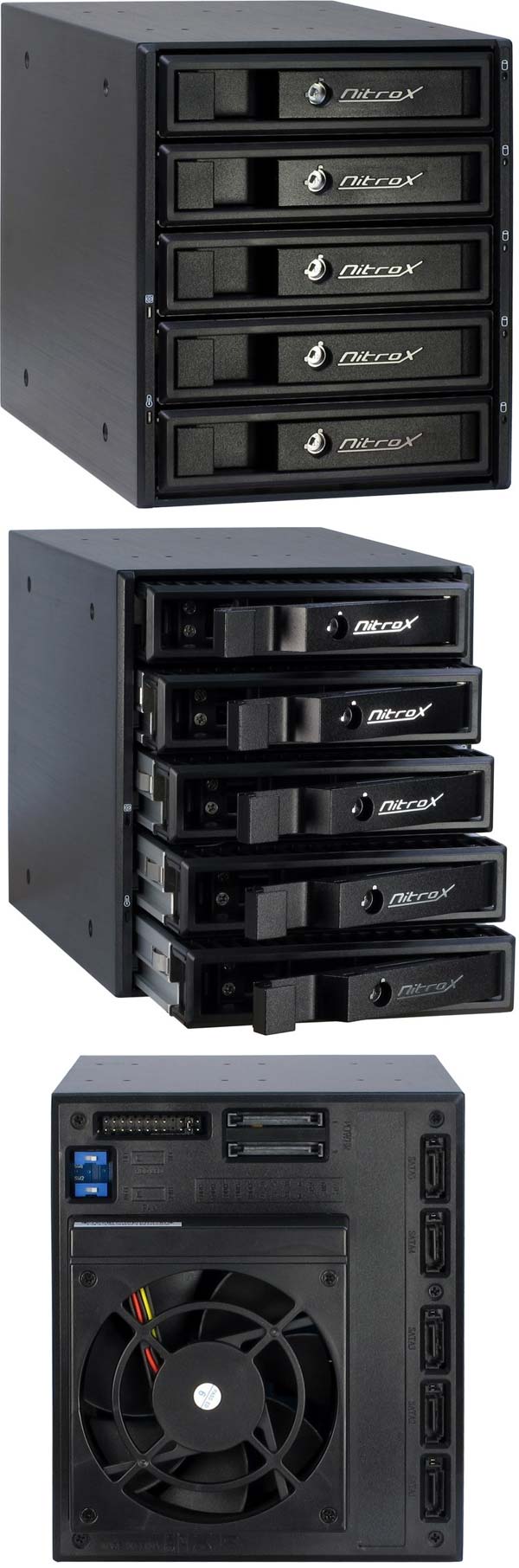 С помощью аппарата VT-315 эта проблема перестанет волновать обладателя компьютера, ведь данный аппарат помещается в 5.25" отсеки (он занимает три из них) и даёт возможность человеку использовать до пяти 2.5"/3.5" накопителей с SAS и SATA (всех поколений, в том числе 6Гб/с) подключением.