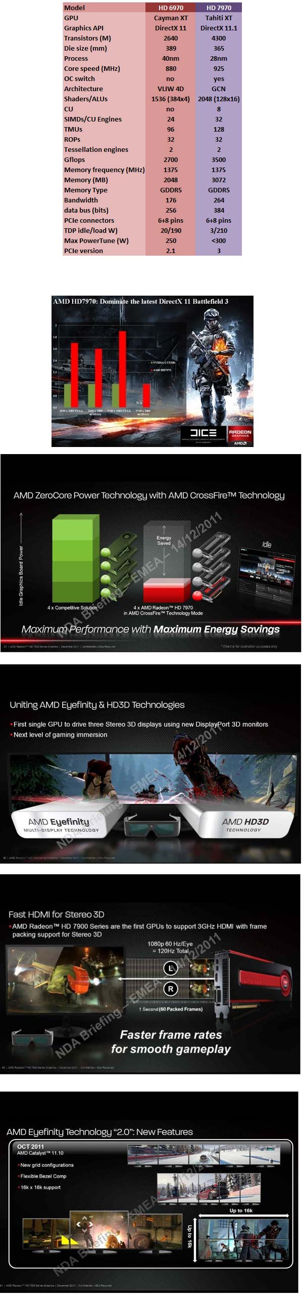 Также нам поведали, что производительность новой видяшки в DX11 приложениях будет процентов на 20-30 выше, чем у GTX 580, а вот в DX9 мы увидим ещё меньшую разницу. Печально, если так будет - уверен, что помимо меня найдётся полно любителей погонять не самые новые игры на новом "железе", а получать в них тот же FPS на HD 7970, что и на HD 6970, как-то не очень радует.
