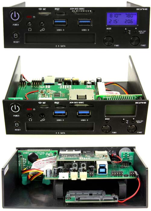 Что предоставляет пользователю устройство Kama Panel 3.1, уважаемые читатели? Помещаемый в 5.25" отсек ПК девайс от Scythe обладает немалым функционалом - он позволяет подключить 2.5" SATA накопитель (9.5мм - предел по высоте), задействовать карты памяти форматов Memory Stick Micro (M2), microSD / microSDHC и SD / SDHC / MMC, предоставить владельцу доступ к аудио выходу и аудио входу.